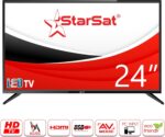 تلفزيون ستار سات 24 بوصة HD LED، تيار متردد/تيار مستمر، تصميم حافة رفيعة، HDMI، USB، وضع ايه في والكمبيوتر.
